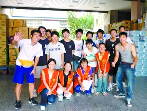 8月15日,实践支队到达高雄,当地有关部门正在紧急调度大量人力物力救灾。在参加完上午的交流活动之后,郝瀚和齐兴达利用下午有限的自由活动时间,前往当地救灾物资调配中心,与在场的70余名台湾志工一起搬运救灾物资。物资调配中心的工作紧张而有序,所有志工排成一排,救灾物资从一个人手中传递到另一个人手中。郝瀚和齐兴达还分别向募捐处捐了款。
