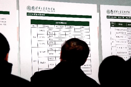 1月13日,考生家长在现场查询清华大学美术学院的招考资料。 新华社发(金硕 摄)