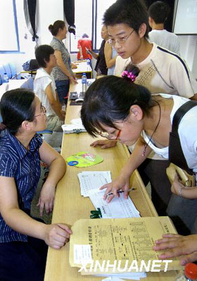 资料图片:8月25日,新生在南京东南大学的贫困生入学“绿色通道”办理手续 新华社记者 孙参 摄