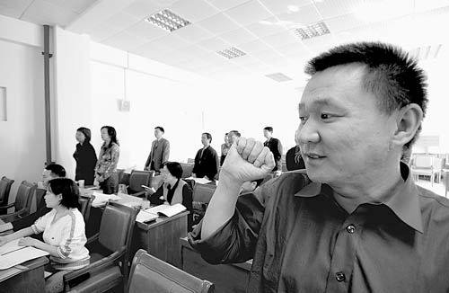2004年3月18日,西南交通大学工商管理班学员论文答辩前进行诚信宣誓。 黄金国/CFP(资料图片)