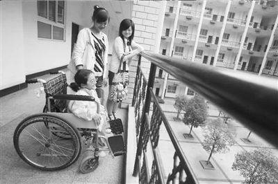 因为轮椅生活不便,王盼母女租住校外一间小平房。除了上课,王盼全部生活都呆在一间不到20平方米的小屋里。母亲白天送她上课后去学校周边的小吃店帮工,“给烧烤店洗海带,每个月650块钱,除去150元房租,就是我们娘俩的伙食费。”王建霞说。