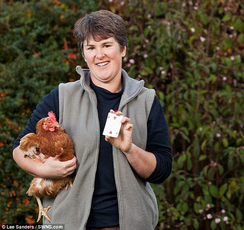 据外媒报道,家住英国诺福克郡的海伦 琼斯称自家养的一只母鸡具有超凡的“数学头脑”,能够准确数出扑克牌上的点数。