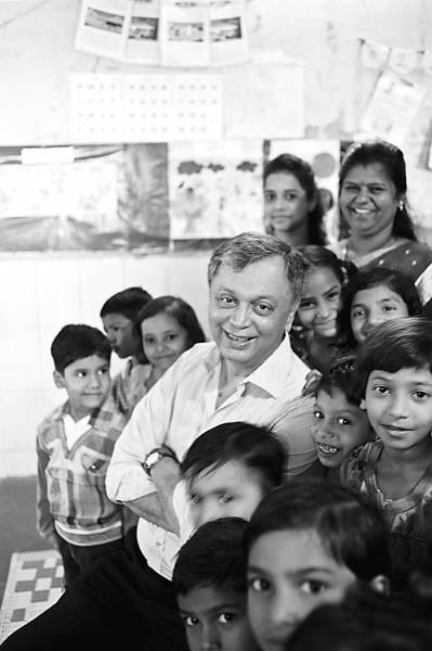 2012年度的WISE教育奖个人贡献奖获得者Madhav Chavan博士和学生们在一起