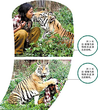 老虎与阿卜杜拉·索勒亲热地玩耍让旁人看得心惊肉跳。