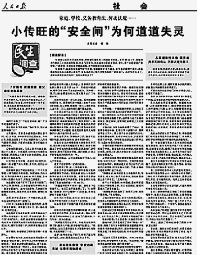 本报社会版于今年7月27日刊发《小传旺的“安全闸”为何道道失灵》,对杜传旺的遭遇进行了调查。 |