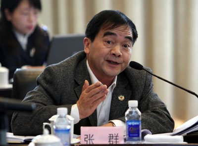 3月4日,全国政协委员张群在发言时说,教育事业应该是蓝天下最公平的事业,农民工子女应享有公平的权利和受教育机会。新华社记者 兰红光 摄