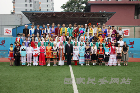 杨晶指出,党和国家高度重视民族工作,高度重视民族地区发展,民大附中是我国民族教育战线的一个缩影。民族教育与普通教育相比,既有共性的一面,又具有鲜明的特色,肩负的责任更多、更重。民大附中建校95年来,为党和国家培养了一代又一代栋梁之材,特别是改革开放以来,为少数民族地区培养了大量的人才。工作在民族教育战线上的教师员工更辛苦、任务更重,付出更多,我们应该向民大附中和全国民族教育战线的老师们表示衷心感谢。希望学校的领导、老师不仅在教育上,还要在生活上关心来自民族地区的学生,特别要更多地关注来自地震灾区的学生,引导他们尽快从阴影中走出来,更加健康地成长。