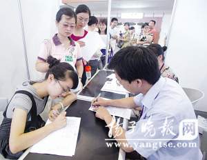 然后,紧挨着江苏银行前的“长龙”,“邻居”江苏金东典当行有限责任公司展区前,光顾的应聘者却是很少很少。“目前中小企业严重缺人,每天忙得不得了,而同时,很多毕业生工作没有着落,一筹莫展。”南京市中小企业协会副会长连文杰对记者说道,“毕业生的眼睛都盯着大企业,不看重中小企业,这是他们找工作难的一个重要原因。”