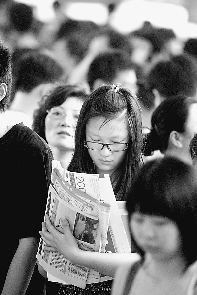 2009年江苏省南京市高考招生咨询会,图为考生在咨询会现场。