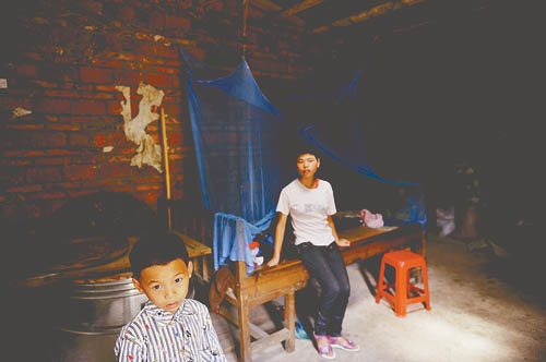 相比之下,弟弟何国华就调皮得多。这个7岁的小男孩少了两颗门牙,嘴角长满了不知名的小红疙瘩。他一边机械地念叨着“a、o、e、u、ü”等字母,一边用眼睛瞟着门口。过了不到5分钟,他终于忍不住了,偷偷对姐姐说:“老师怎么还没来,不是在睡觉吧?”