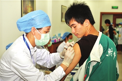 资料图片:9月21日,北京市优先对参与国庆庆典活动的学生开展甲流疫苗接种。