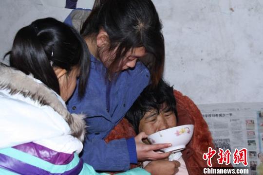 刘交交(中)喂妈妈吃药,米凌子 摄