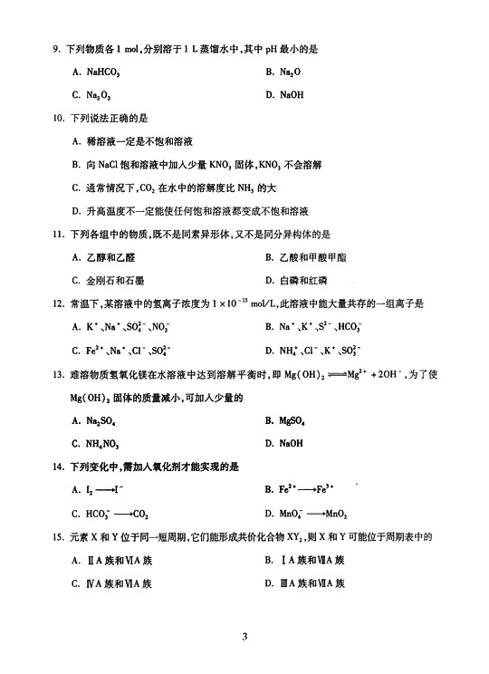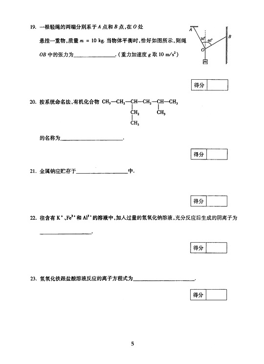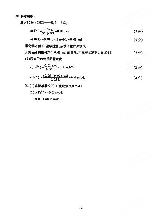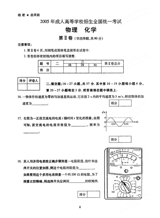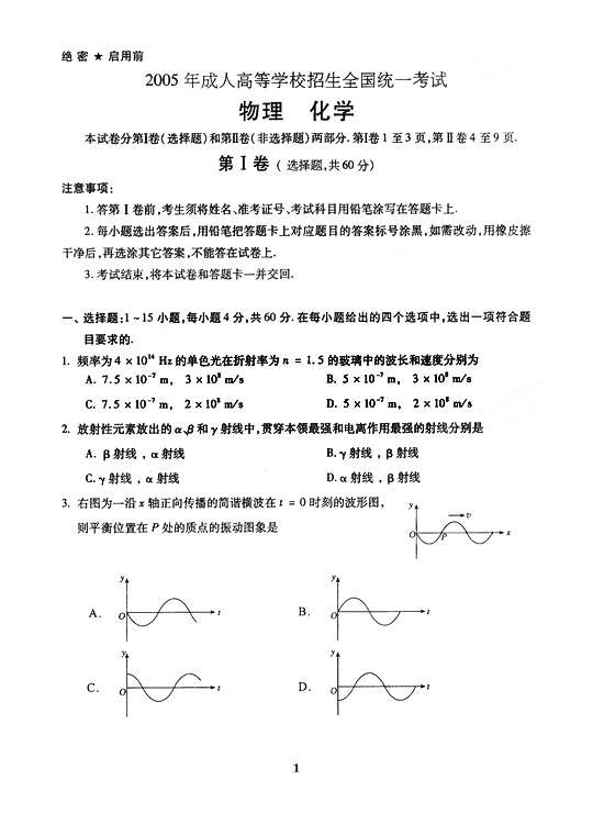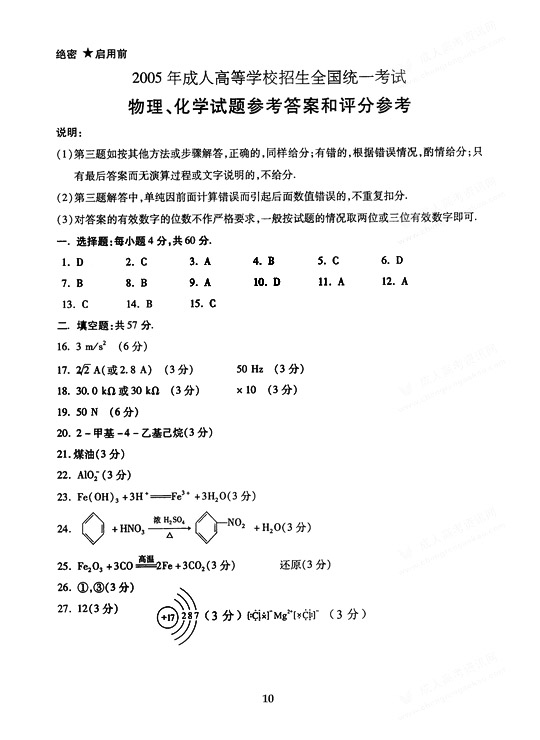 2005年全国成人高等学校(高起点)招生统一试卷及答案—物理化学